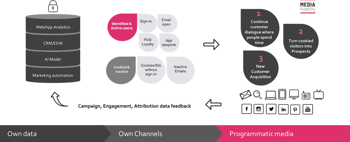 Working from 1st party data and own channels outwards, and measuring each activity's ROI